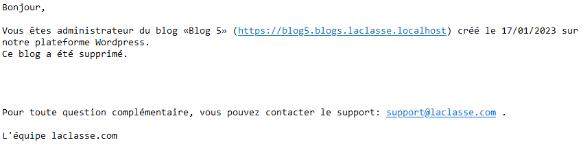 Une fois le blog supprimé, un (4ème) mail informe l’utilisateur :